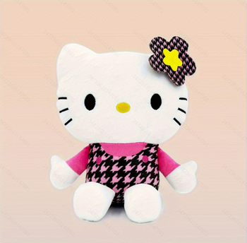Muñeco de peluche de Sanrios HelloKitty de 8 pulgadas/20 cm, estilo Y2K a cuadros negros y rosas, animal de peluche suave, adorno bonito para fanáticos