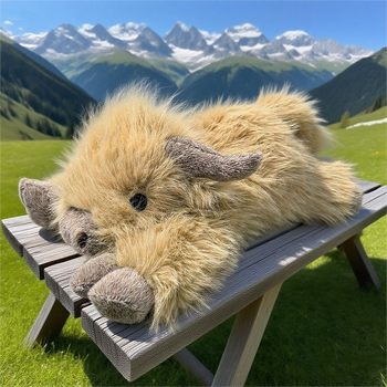 Sınır ötesi yeni yayla inek peluş oyuncak uzun saç yalan yastık sevimli yumuşak doldurulmuş hayvan buzağı peluş